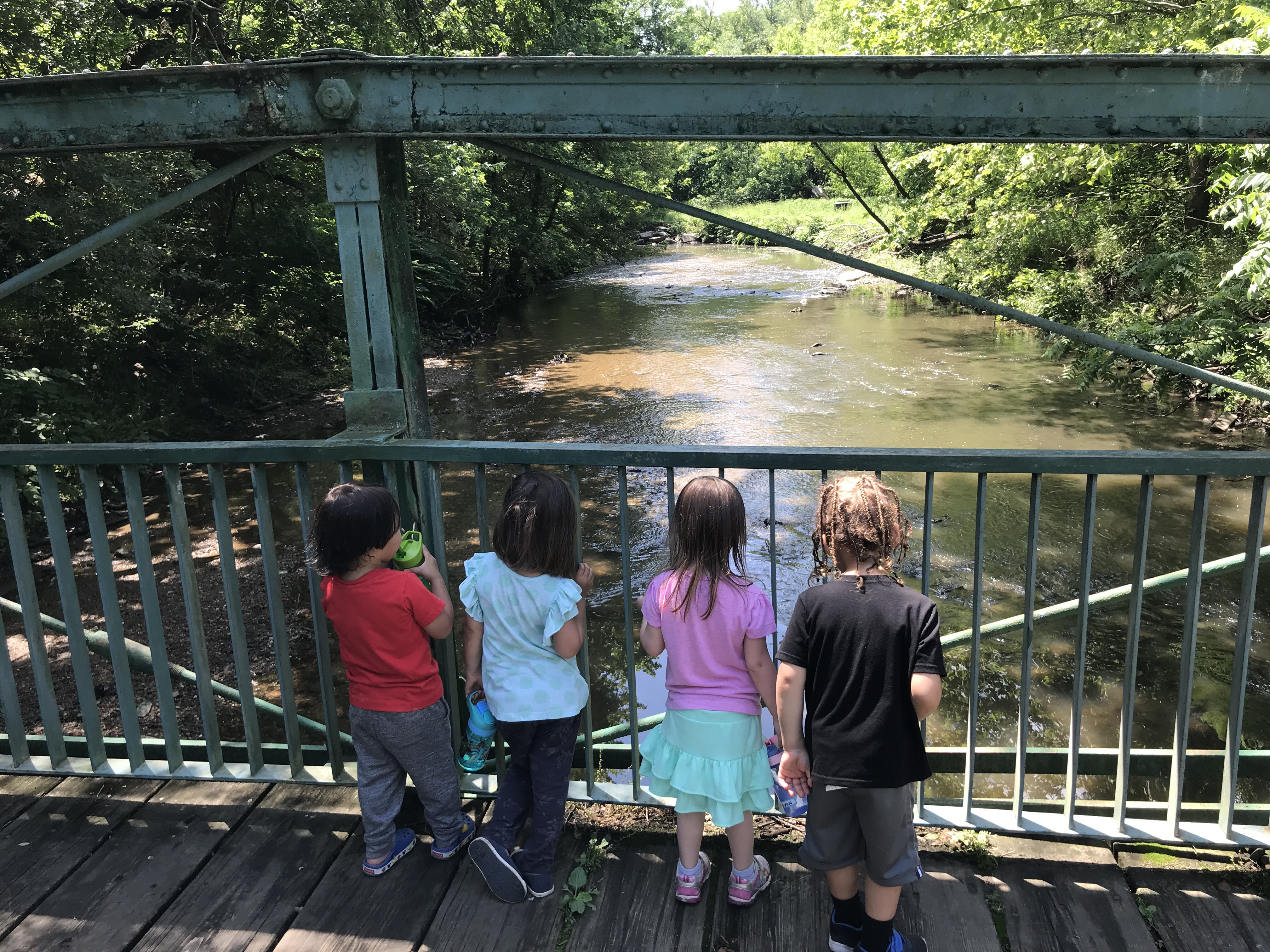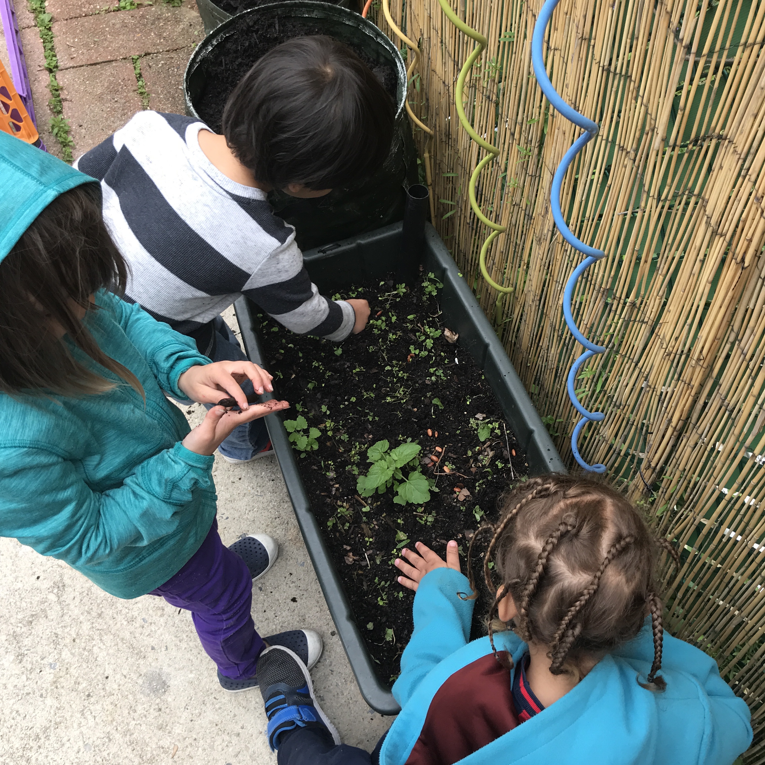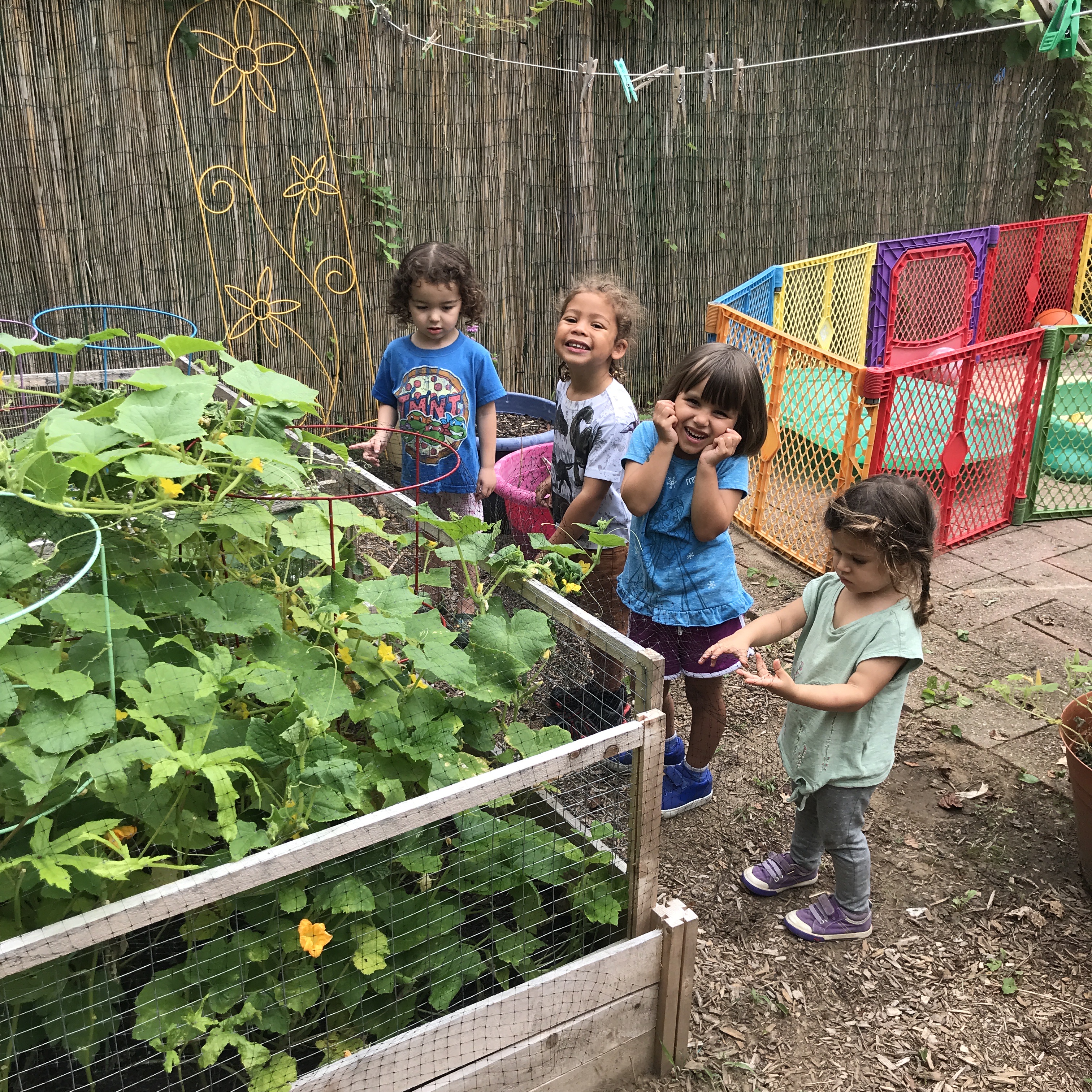We have a ground floor playroom that is our indoor classroom. We also have a big back yard with ample play space and a garden where we grow veggies flowers and herbs. We take walks on the Cobbs Creek hiking trail, learning about nature and the seasons, and often playing at two nearby playgrounds.