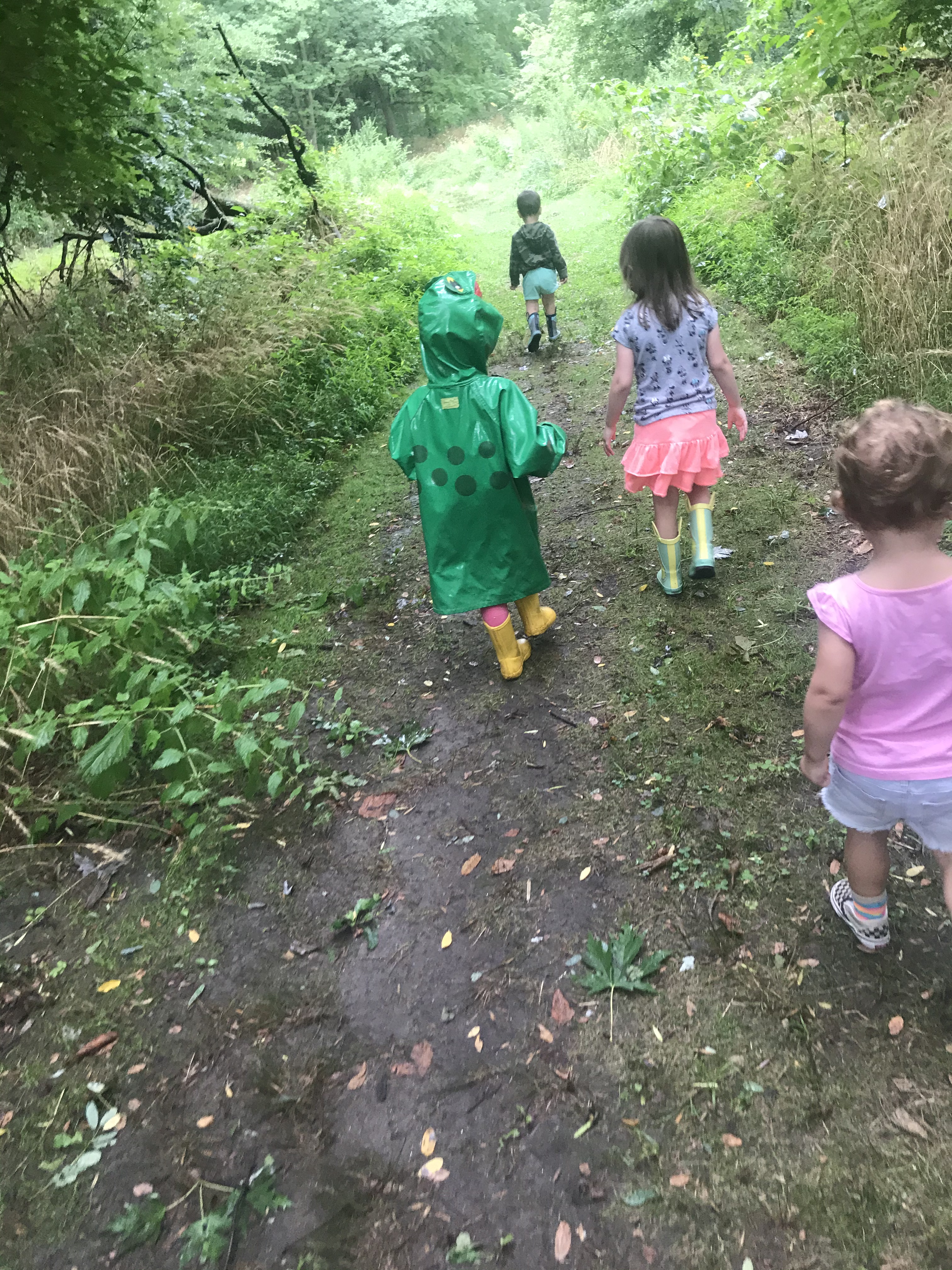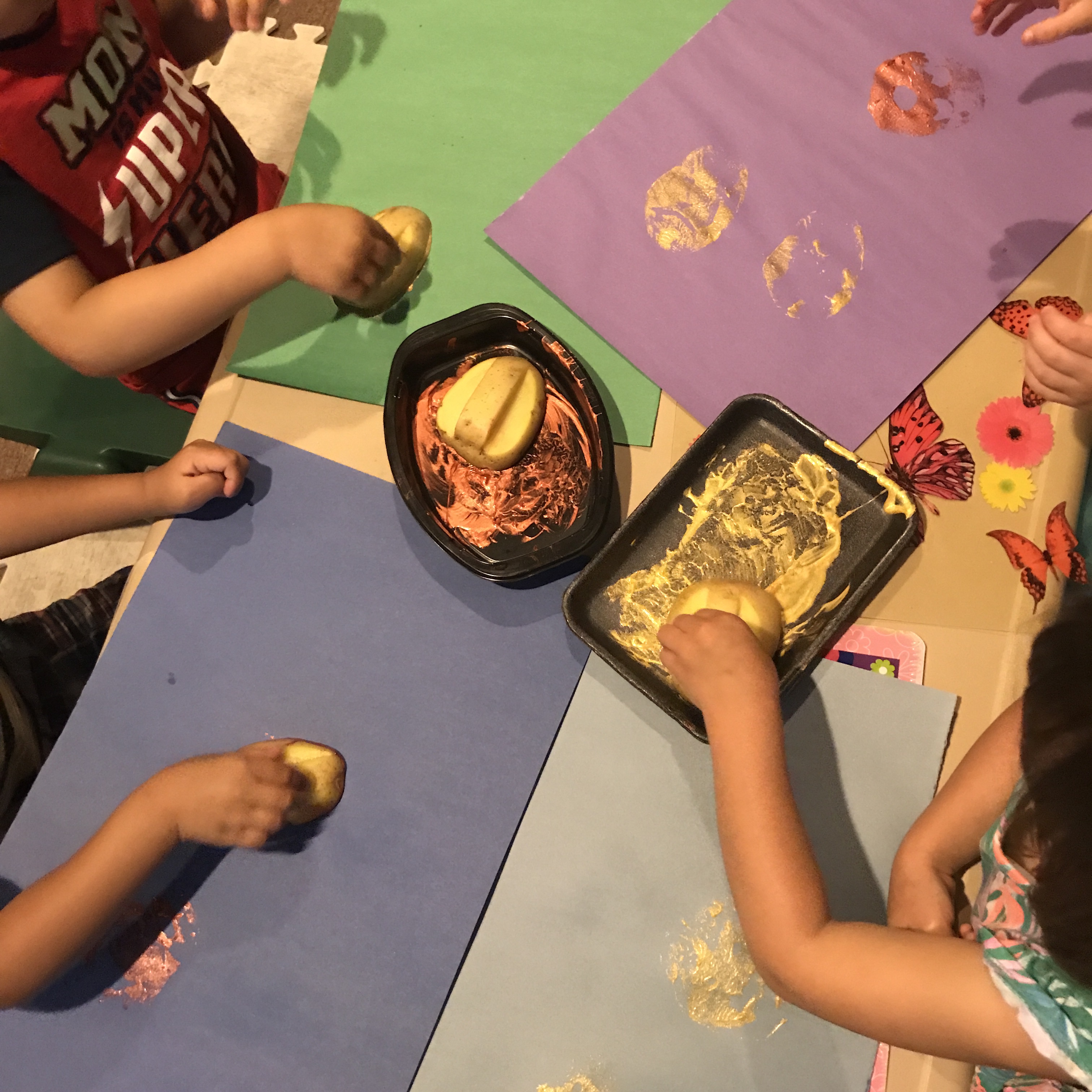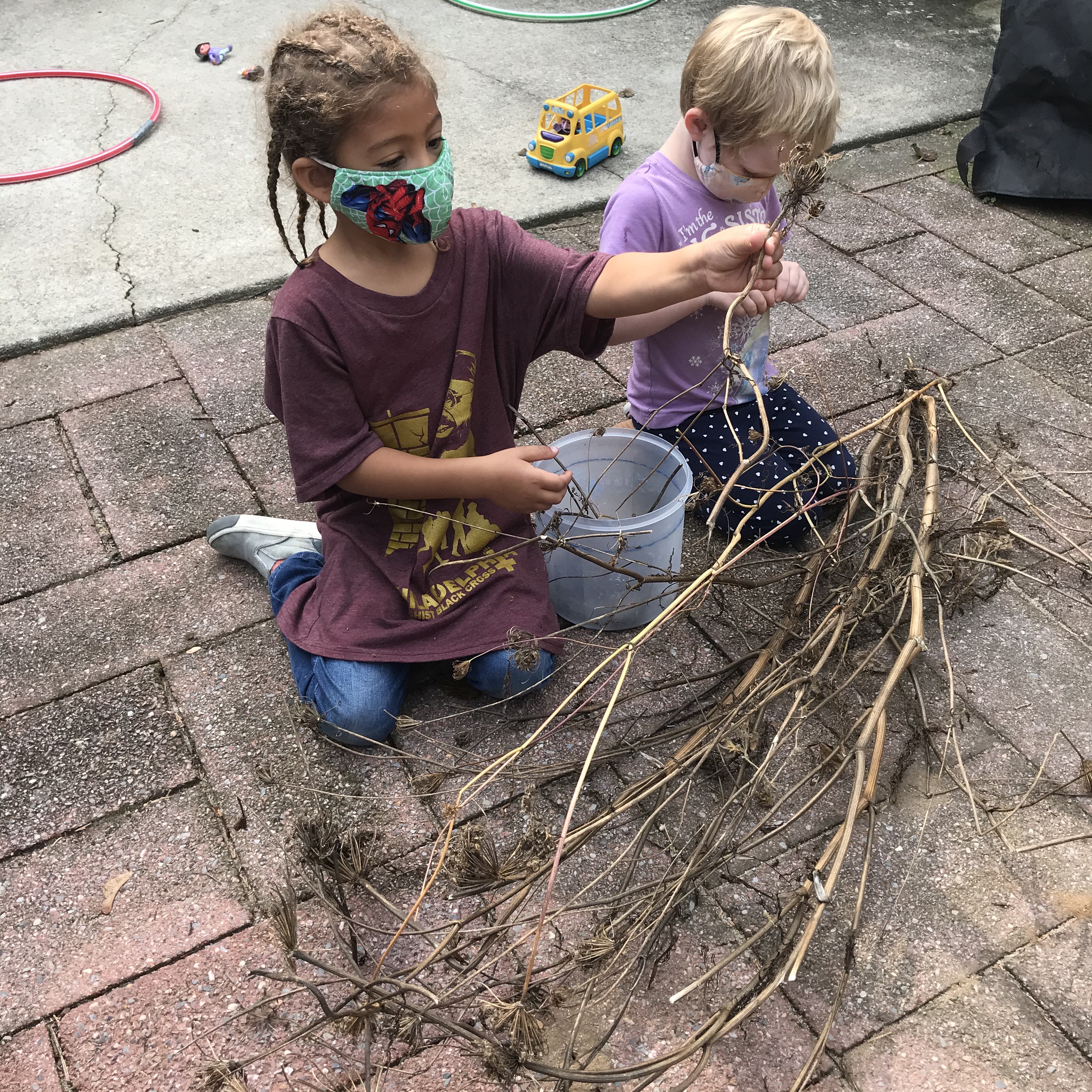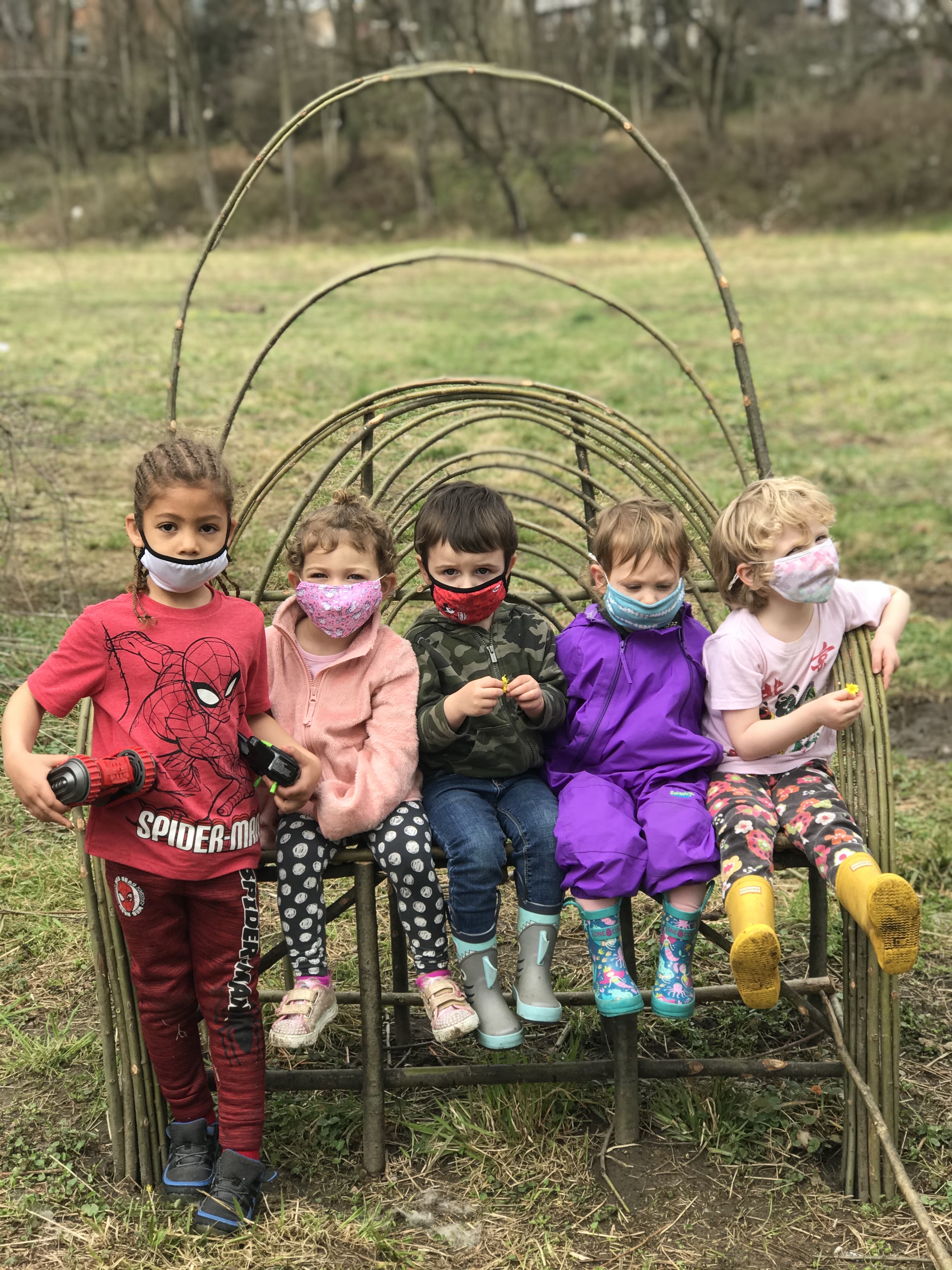 We have a ground floor playroom that is our indoor classroom. We also have a big back yard with ample play space and a garden where we grow veggies flowers and herbs. We take walks on the Cobbs Creek hiking trail, learning about nature and the seasons, and often playing at two nearby playgrounds.